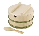 木曽工芸 電子レンジ対応 曲げ輪おひつ(5合用) 価格: 12,600円 レビュー評価:4.0 レビュー数:1 ●木曽の曲げ輪職人(早川松雄)がつくった曲げ輪おひつ ●昔からの伝統技法でつくられた技術が今も生きている ●非常に丈夫でしっかりしたつくりで、金属釘を使用していないため、ご飯を入れたまま電子レンジで温めることができる ●外側の曲げ輪部分は粘りのある桧材を使い、底板と上蓋は伸び縮みの一番少ないといわれる木曽さわら材の柾目板を使用 ●曲げ輪の止め部分は昔から使われている桜の木の皮をなめしたものを使用 炊いた玄米の保存のために買いました。木のおひつだと冷蔵庫に入れなくても冬場で数日もつとどこかで読んだので。